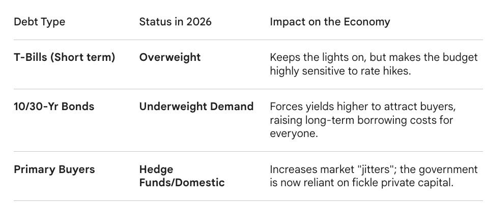 While the shift to T-Bills has kept the government running, it has created a structural vulnerability: